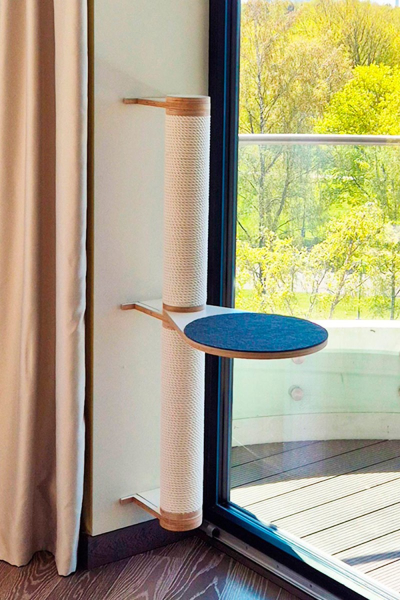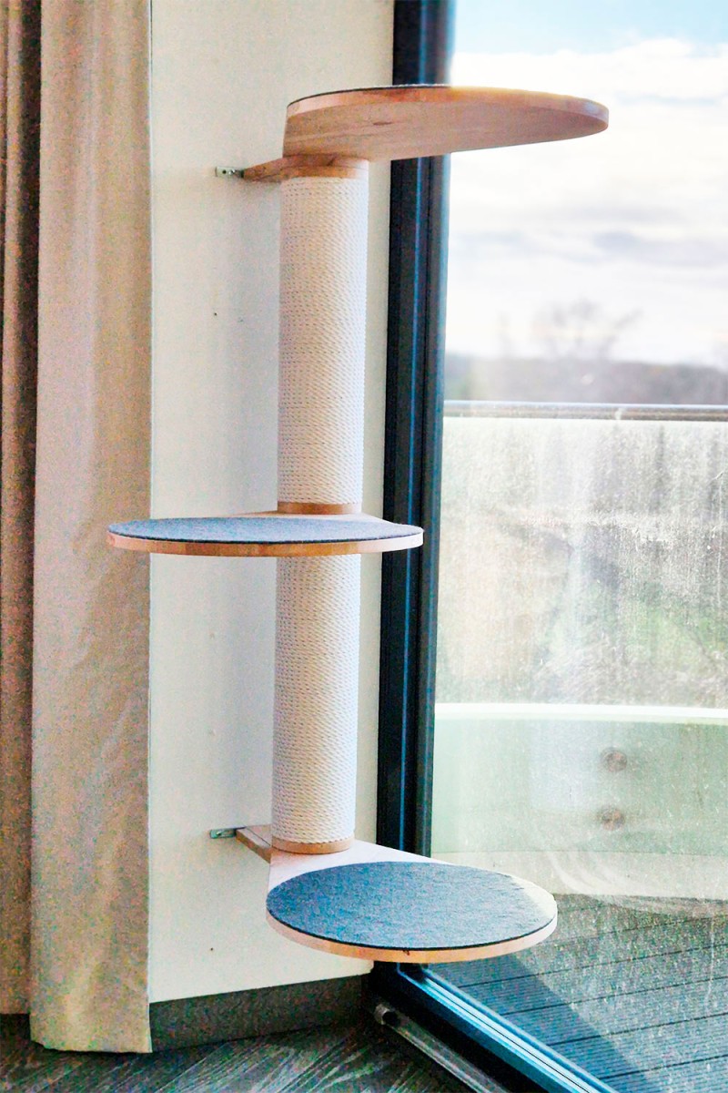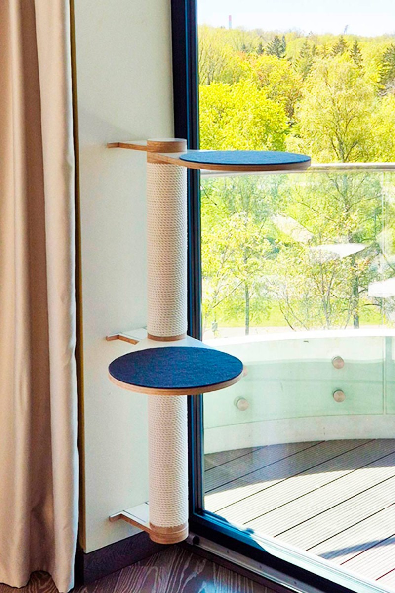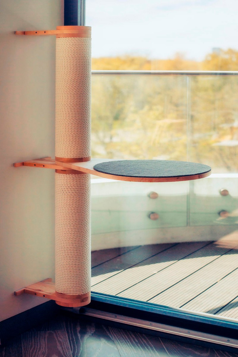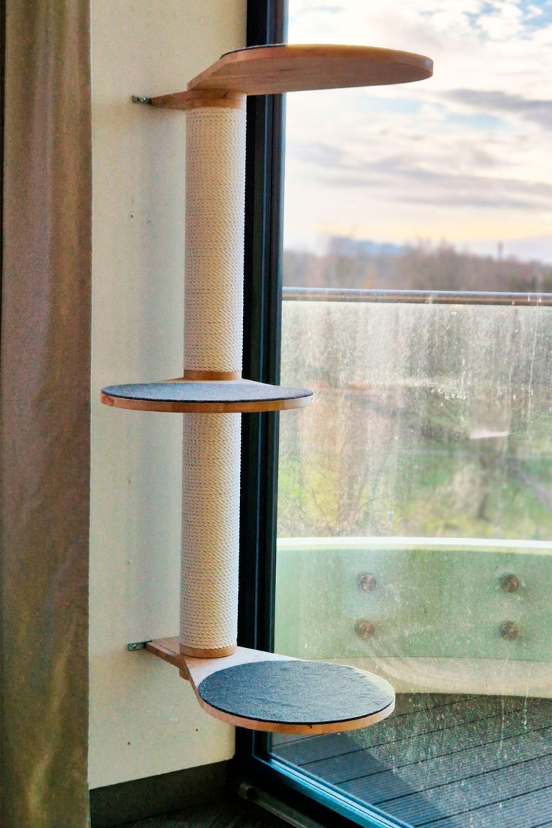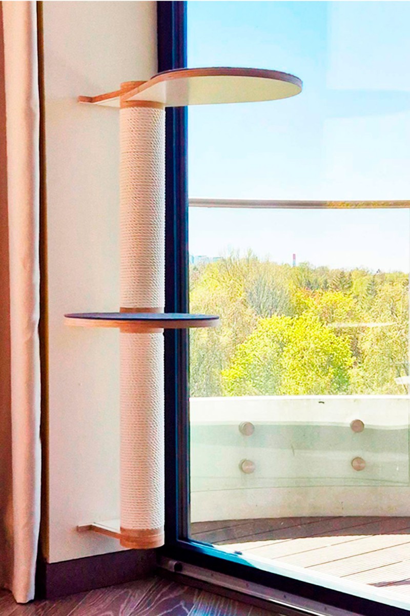 Tugev konstruktsioon, mis paigaldatakse seinale sobivale kõrgusele — vastavalt kassipoja või täiskasvanud kassi kasvule. Tänu seinale kinnitamisele on ronimispuu alt lihtne puhastada — saab mugavalt tolmuimejaga või mopiga läbi minna. Moodulkonstruktsioon võimaldab hõlpsasti vahetada üksikuid osi ja pikendab toote eluiga.