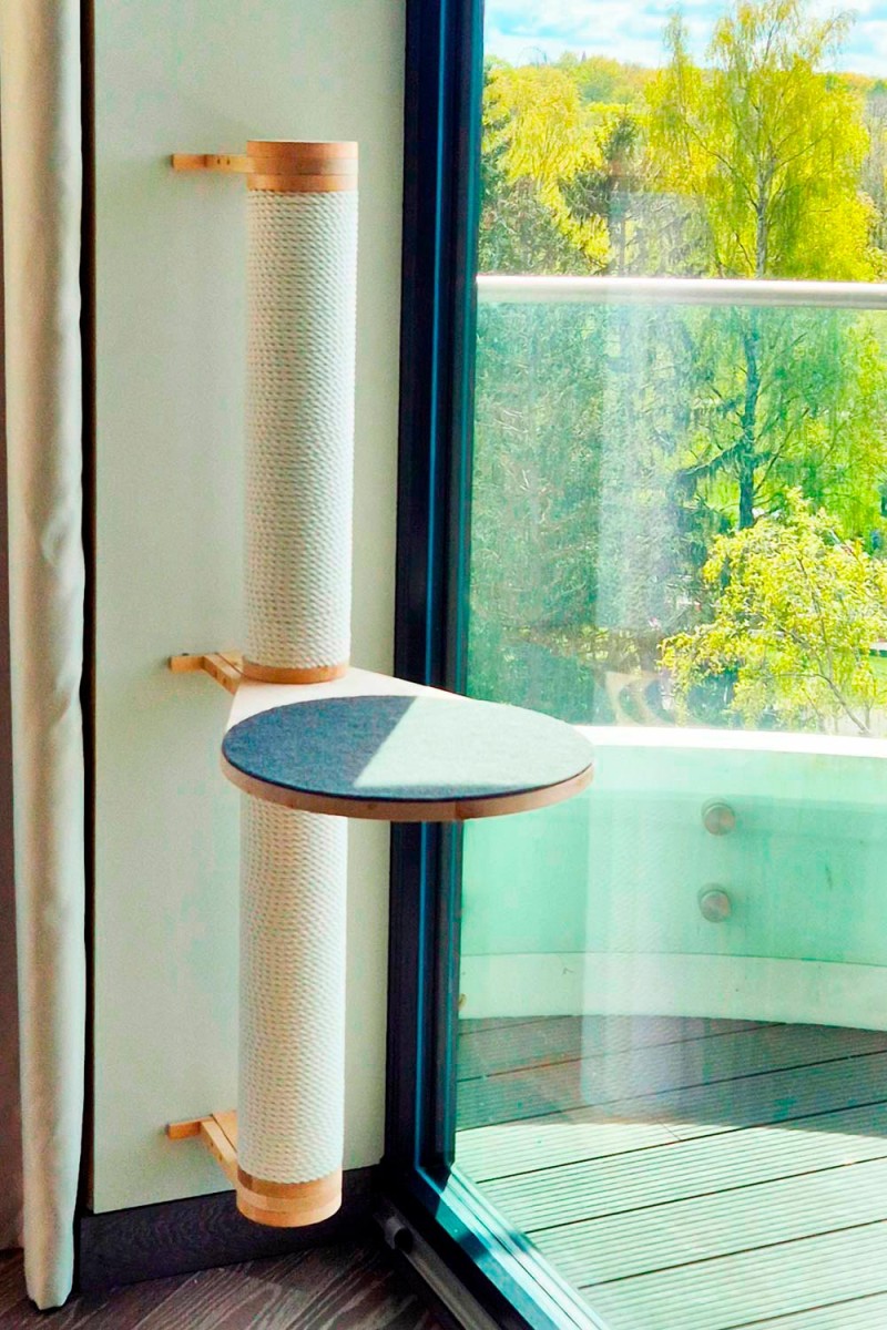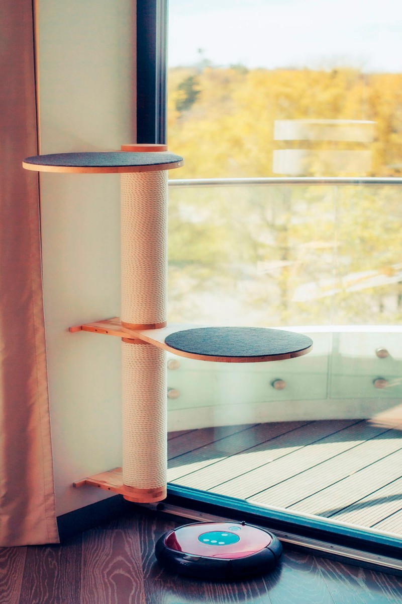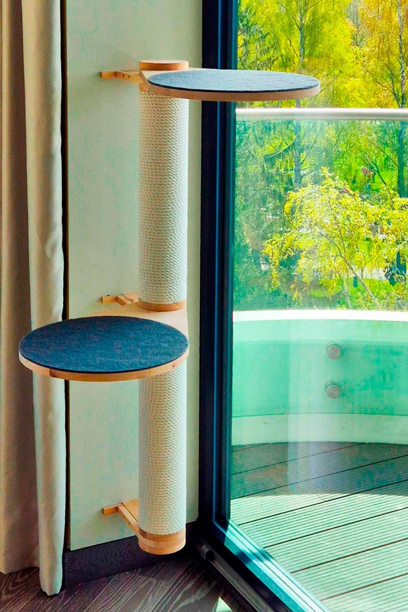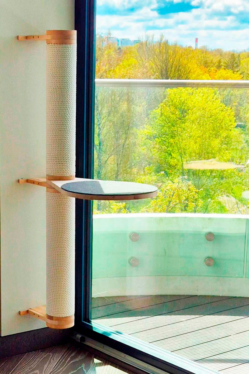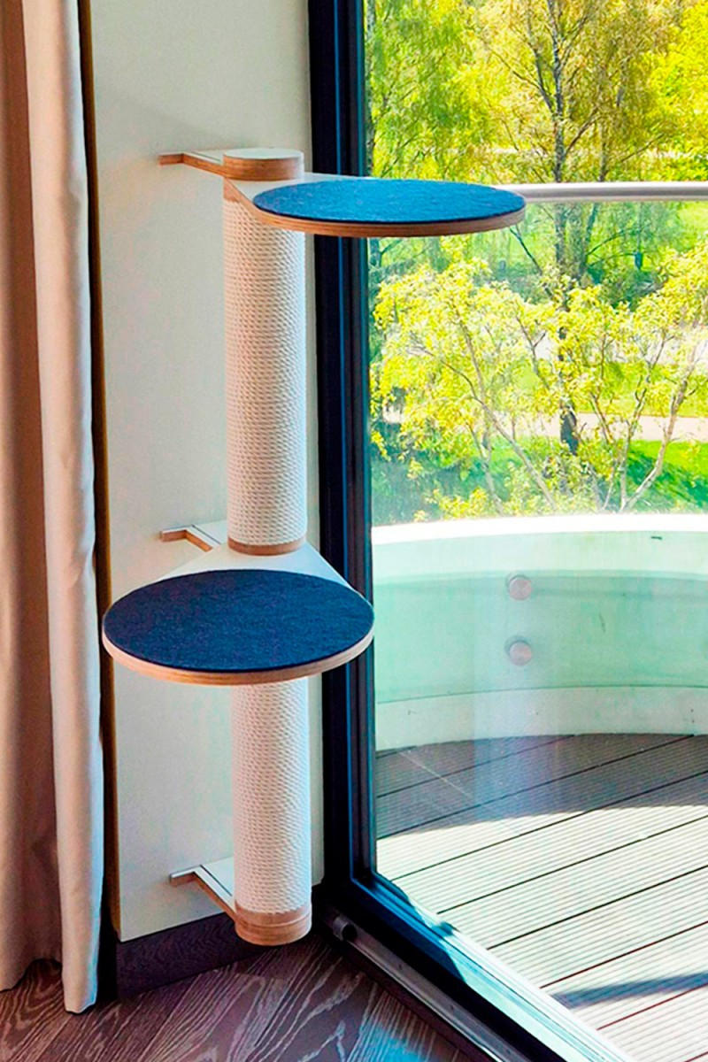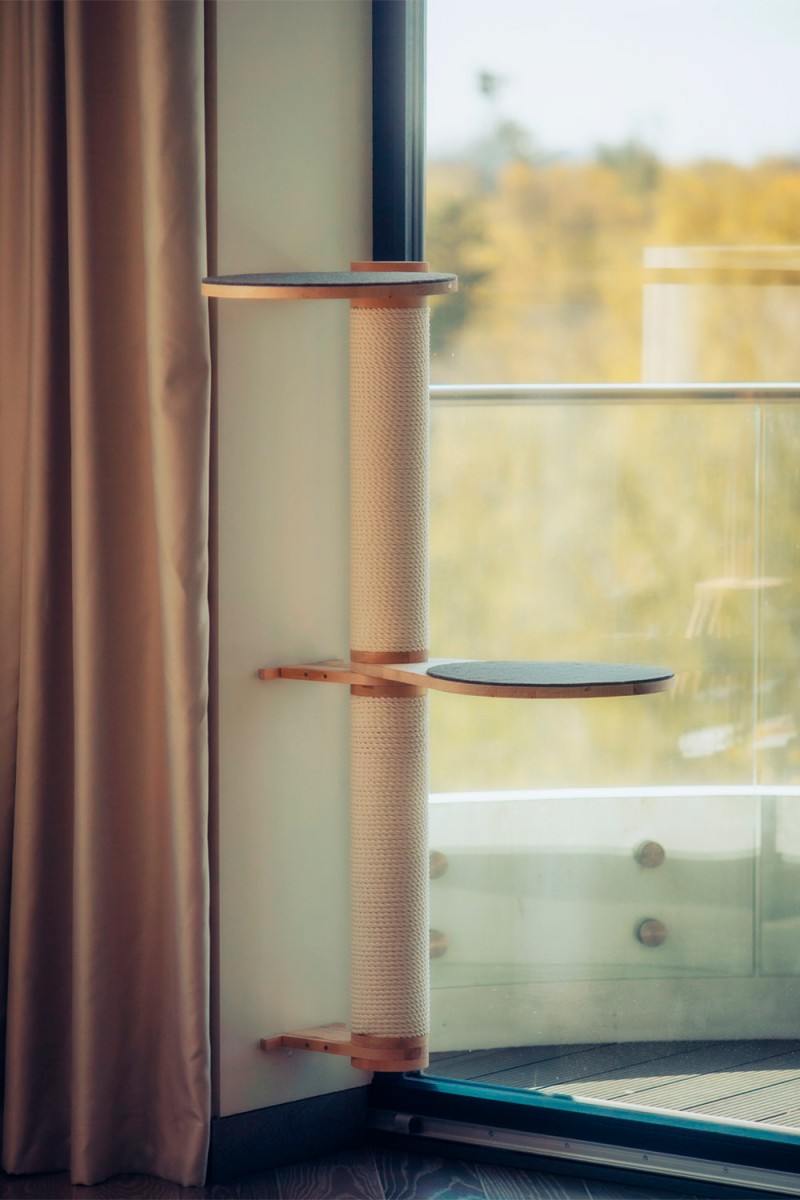 Tugev konstruktsioon, mis paigaldatakse seinale sobivale kõrgusele — vastavalt kassipoja või täiskasvanud kassi kasvule. Tänu seinale kinnitamisele on ronimispuu alt lihtne puhastada — saab mugavalt tolmuimejaga või mopiga läbi minna. Moodulkonstruktsioon võimaldab hõlpsasti vahetada üksikuid osi ja pikendab toote eluiga.