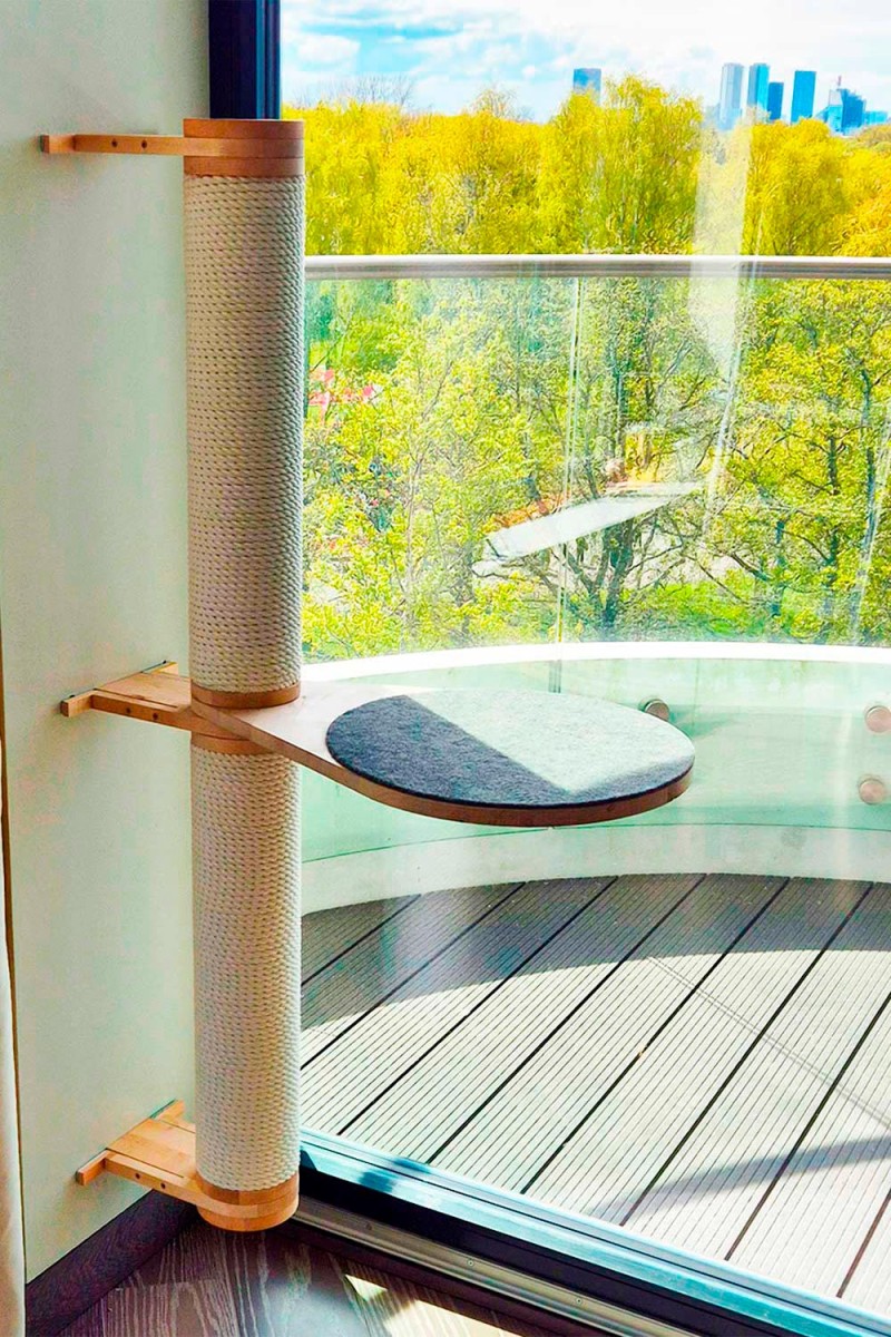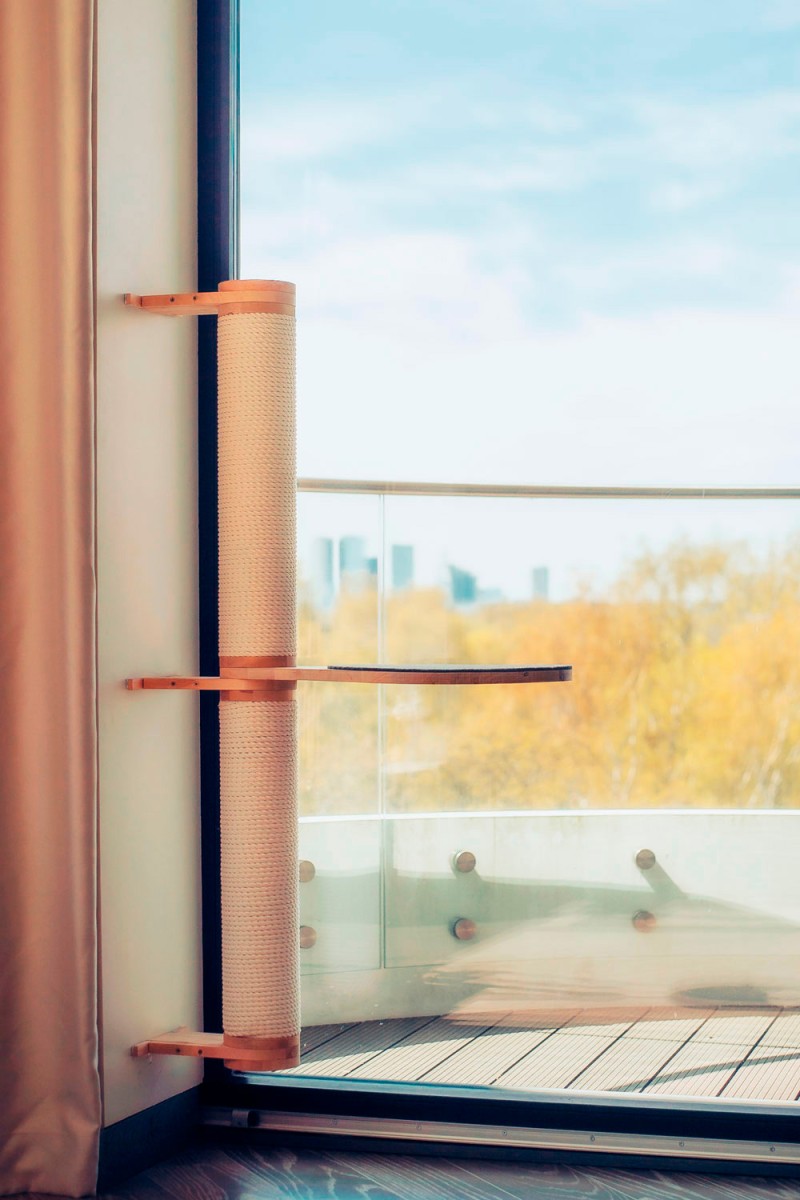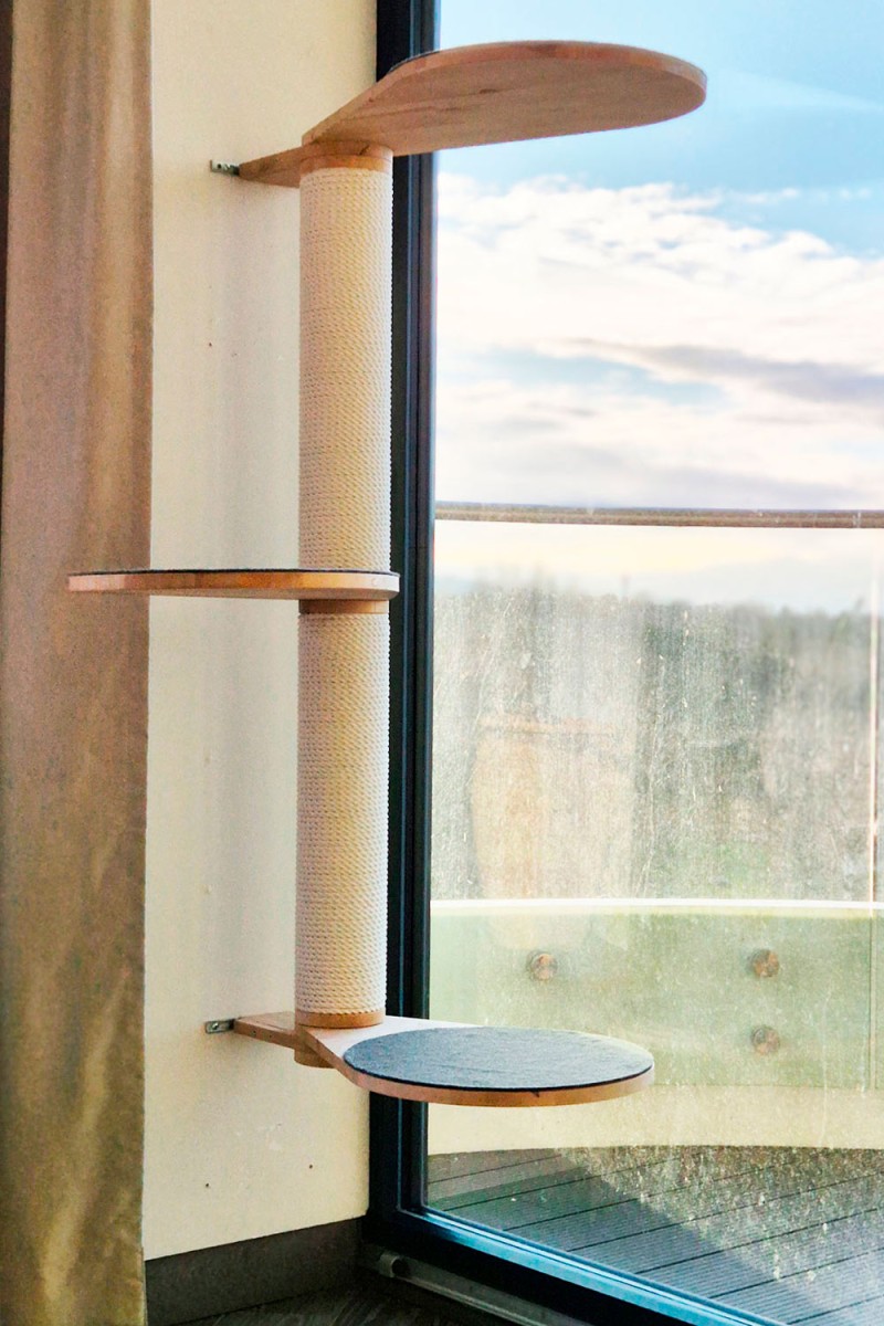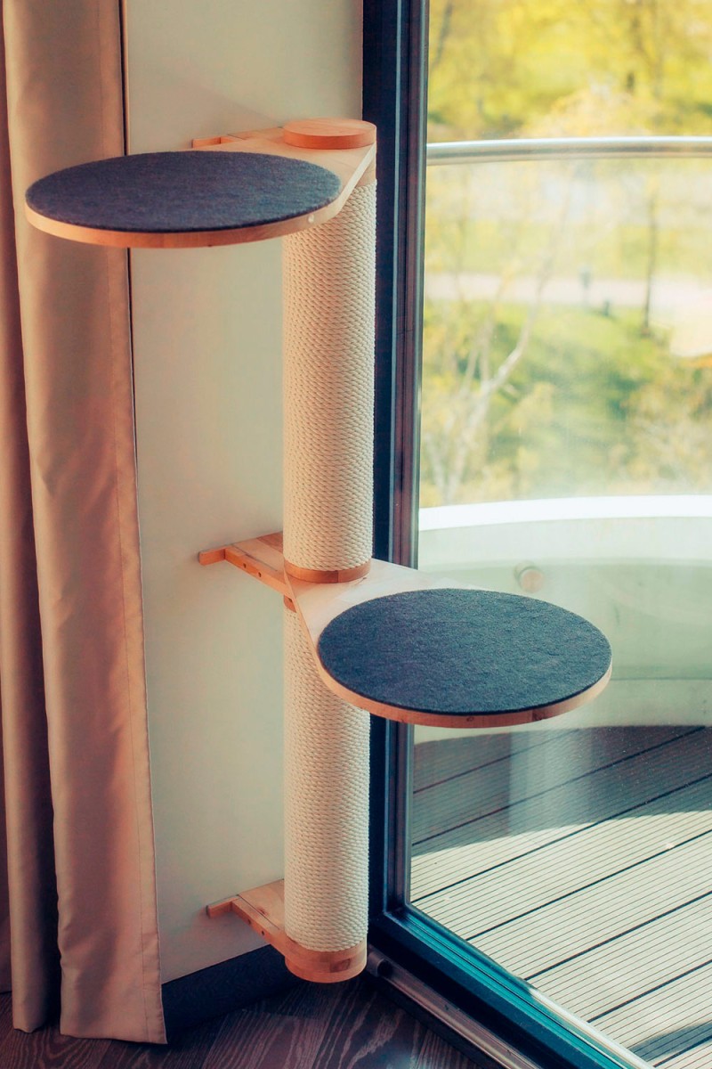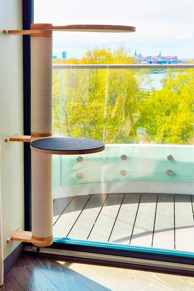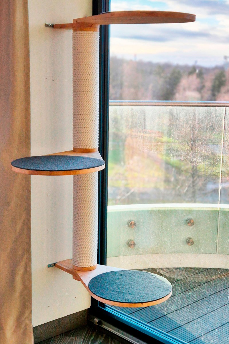 Tugev konstruktsioon, mis paigaldatakse seinale sobivale kõrgusele — vastavalt kassipoja või täiskasvanud kassi kasvule. Tänu seinale kinnitamisele on ronimispuu alt lihtne puhastada — saab mugavalt tolmuimejaga või mopiga läbi minna. Moodulkonstruktsioon võimaldab hõlpsasti vahetada üksikuid osi ja pikendab toote eluiga.