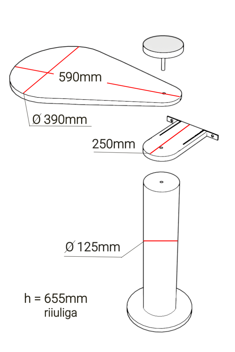 Mõõdud ja kokkupanek — põrandal seisev kassipuu, seinakinnitusega, 66 cm